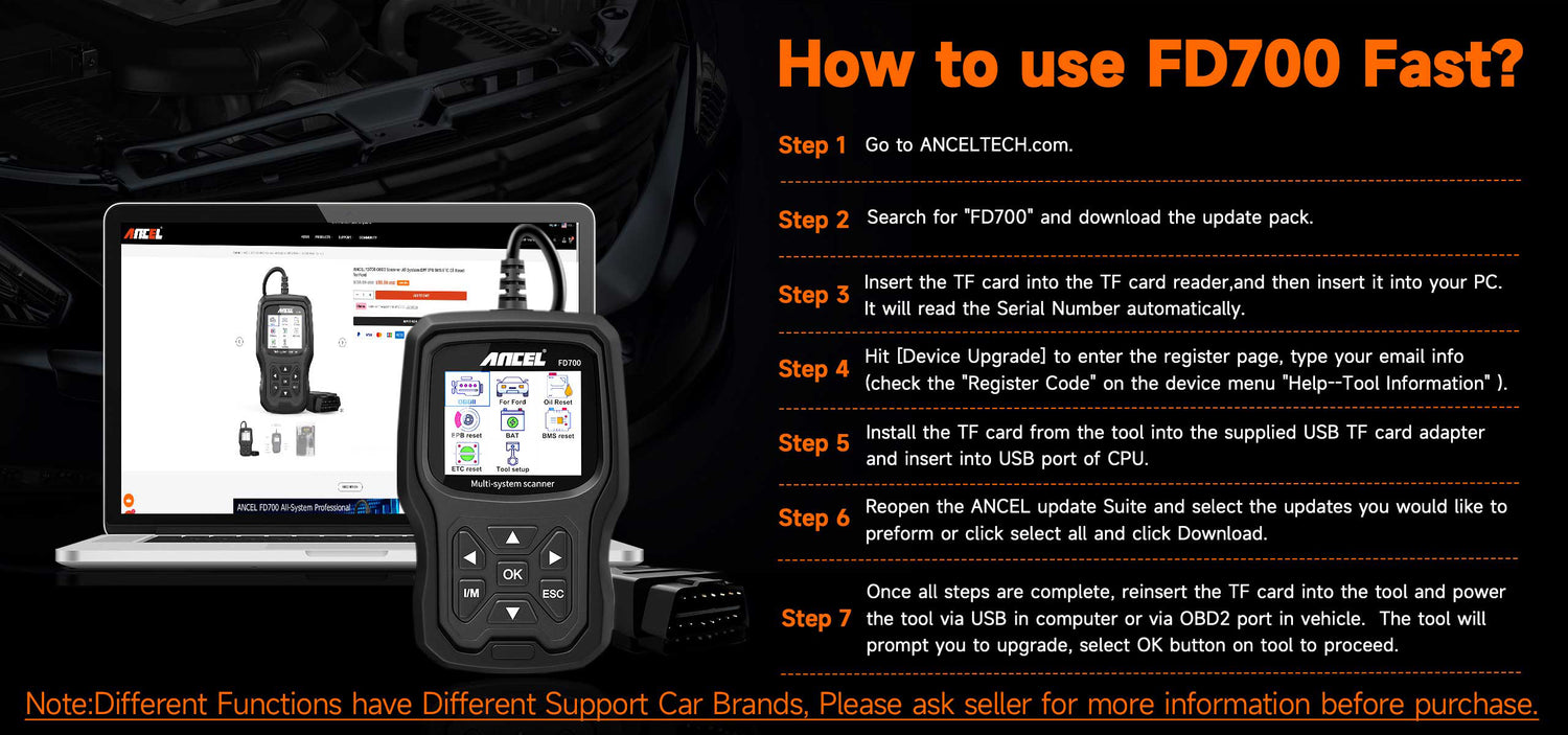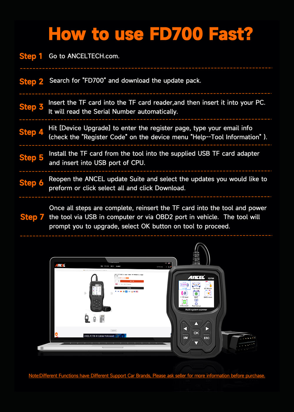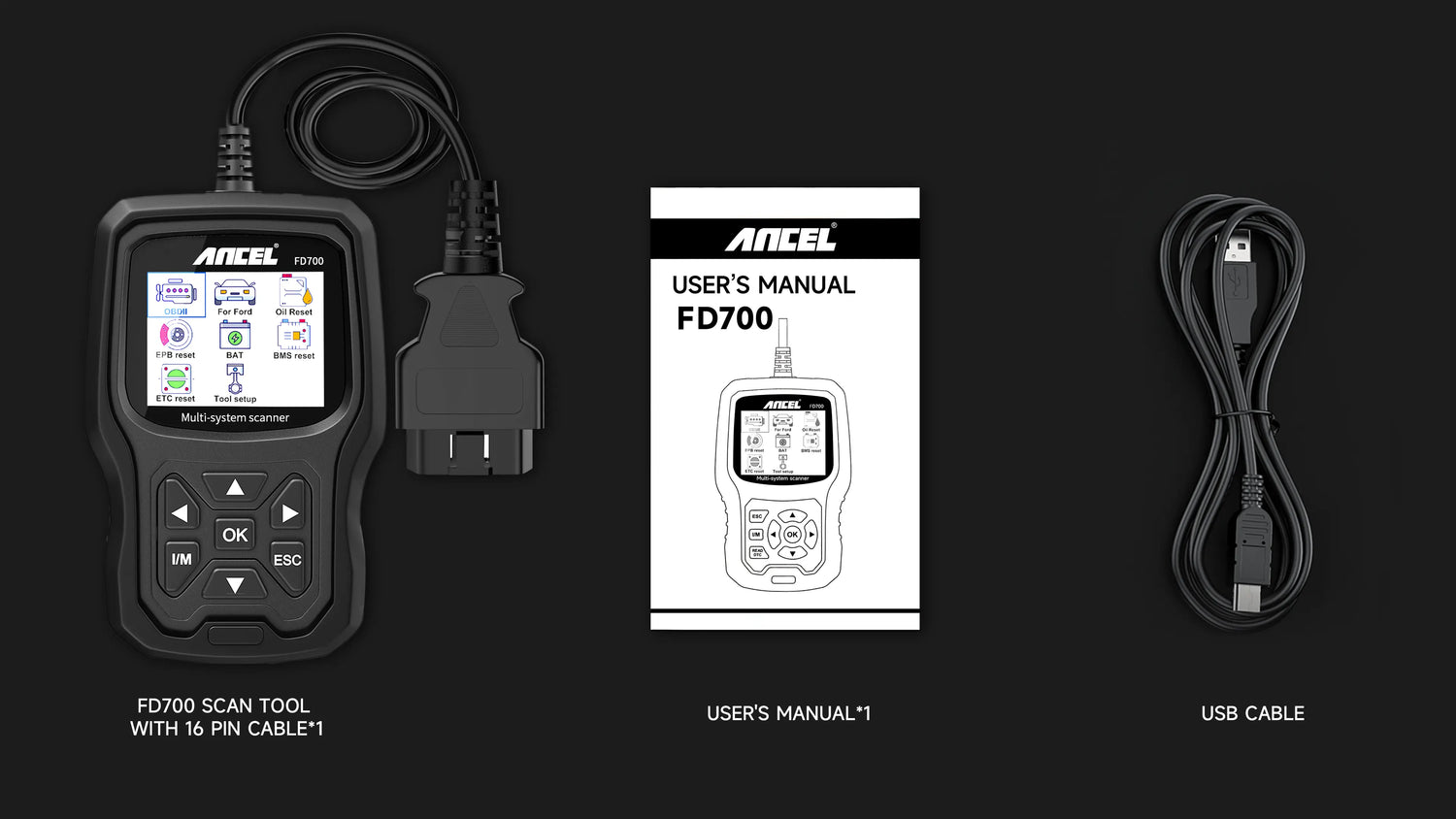The FD700 scan tool is designed specifically for Ford, Lincoln, and Mercury cars, which can quickly scan and easily access all systems (engine, SRS, TPMS, ABS, SAS, ESP, TCM, CKP, EPB, EPS, BMS, etc.), while supporting the body, chassis, powertrain, and all control modules. It can read and clear fault codes, and has various special functions to help you effectively maintain your car, providing you with good repair assistance while saving time and money.