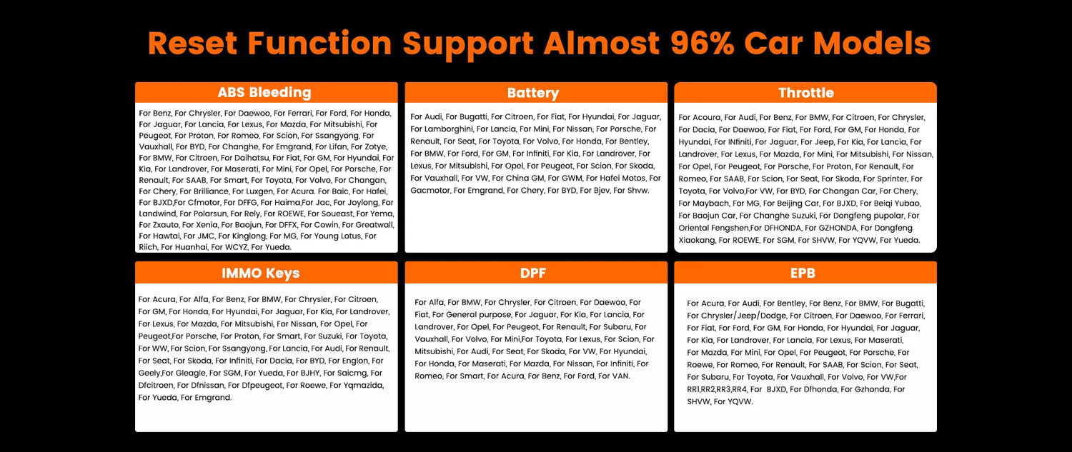 Die Reset-Funktion unterstützt auch 96 % der Automodelle