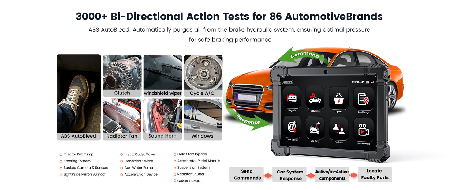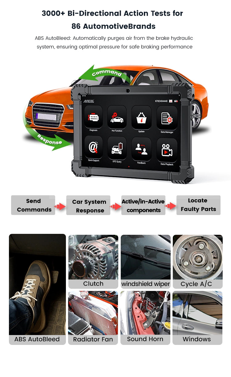 Second, the X7 supports approximately 30,00 active/bidirectional tests—such as testing wipers, doors, windows, etc., to check if they respond correctly. This ensures that the X7 can easily pinpoint issues during daily maintenance, servicing, or when troubleshooting car problems, making it an essential tool for routine maintainance and repairs.