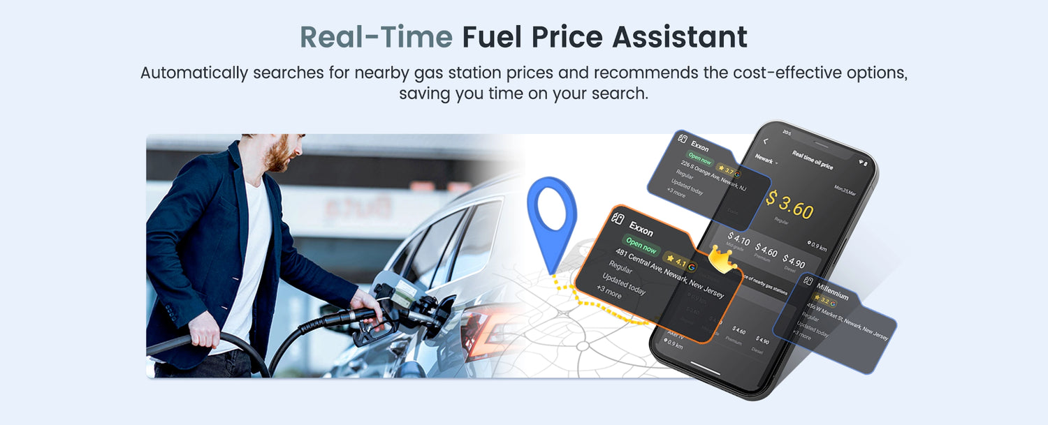 Automatically searches for nearby gas station prices and recommends the cost-effective options, saving you time on your search.