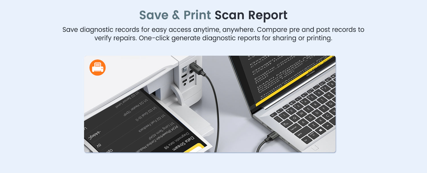 Save unlimited scan records for easy access anytime, anywhere. Compare pre and post scans to verify repairs. One-click generate diagnostic reports for sharing or printing.