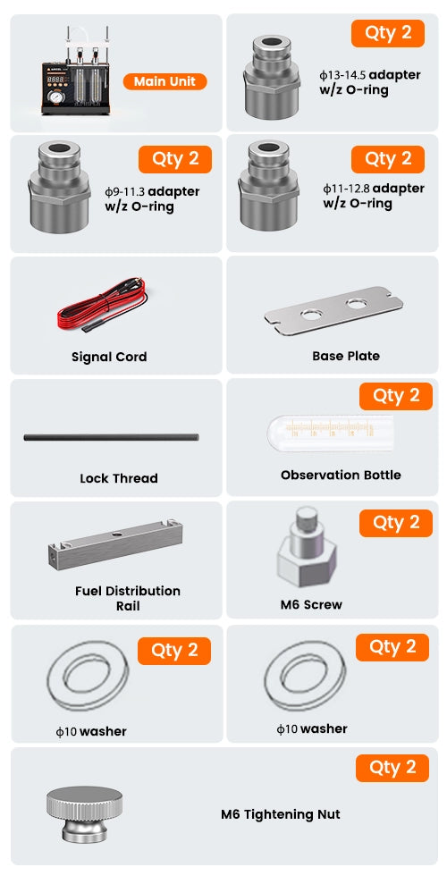 · ​​Supports Motorcycles / MPI 6 & 12V Top-Feed Fuel Injectors.